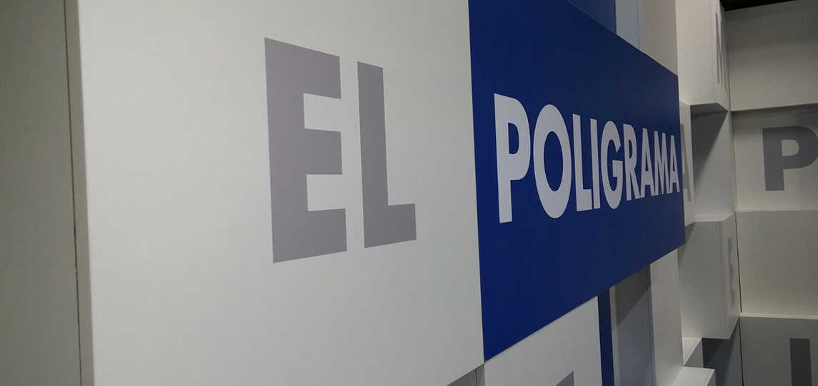 Plató de televisión destinado a Televisión Murciana para su programa relacionado con política “El Poligrama”. Está compuesto por el fondo formado por cubos de diferentes profundidades, blancos y azules buscando la similitud al juego de los crucigramas.